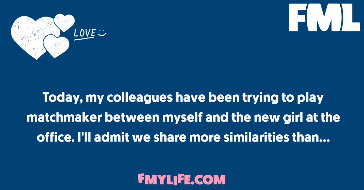 Today, my colleagues have been trying to play matchmaker between myself and the new girl at...