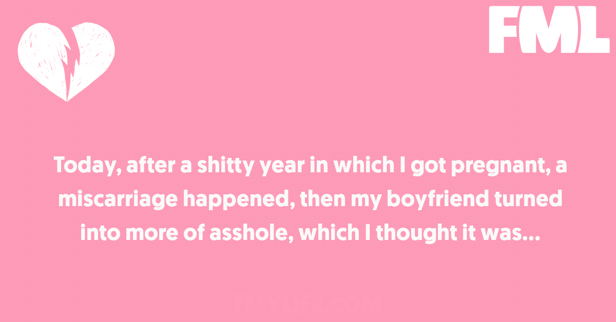 Today, after a shitty year in which I got pregnant, a miscarriage happened, then my boyfriend...