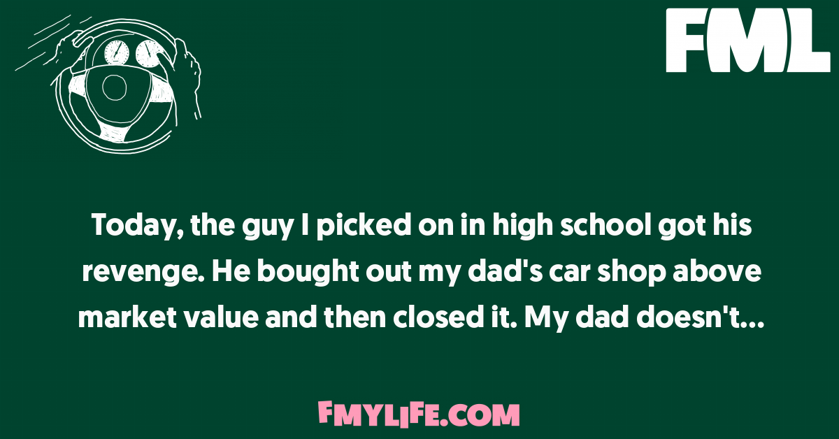 Today, the guy I picked on in high school got his revenge. He bought out my dad's car shop...