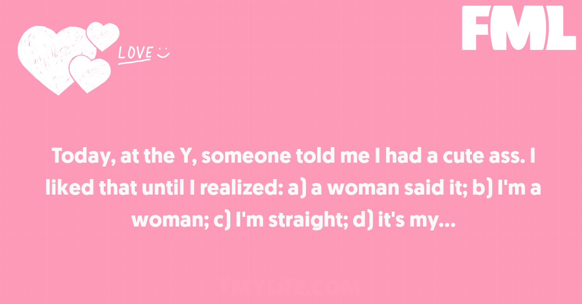Today, at the Y, someone told me I had a cute ass. I liked that until I realized: a) a woman...
