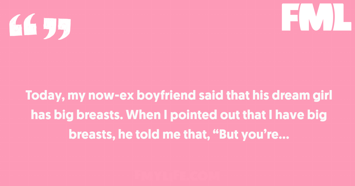 Today, my now-ex boyfriend said that his dream girl has big breasts. When I pointed out that...