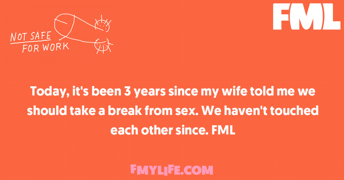 Today, it's been 3 years since my wife told me we should take a break from sex. We haven't...
