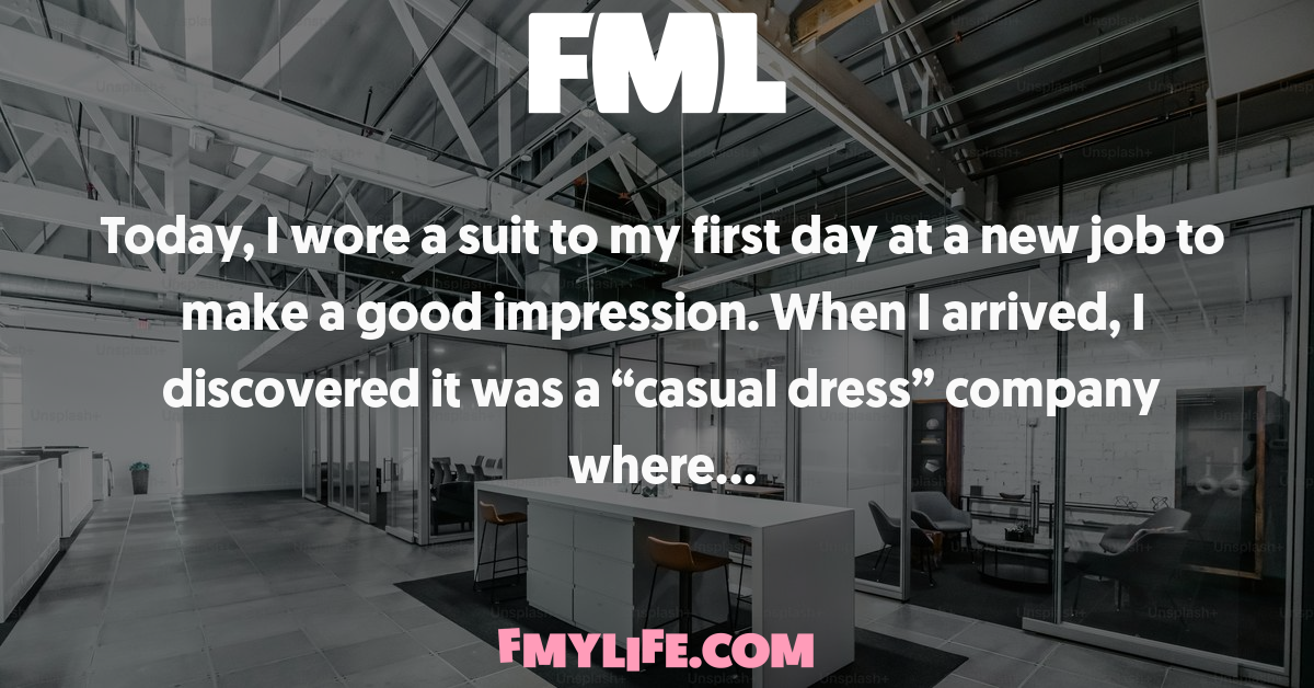 Today, I wore a suit to my first day at a new job to make a good impression. When I arrived,...