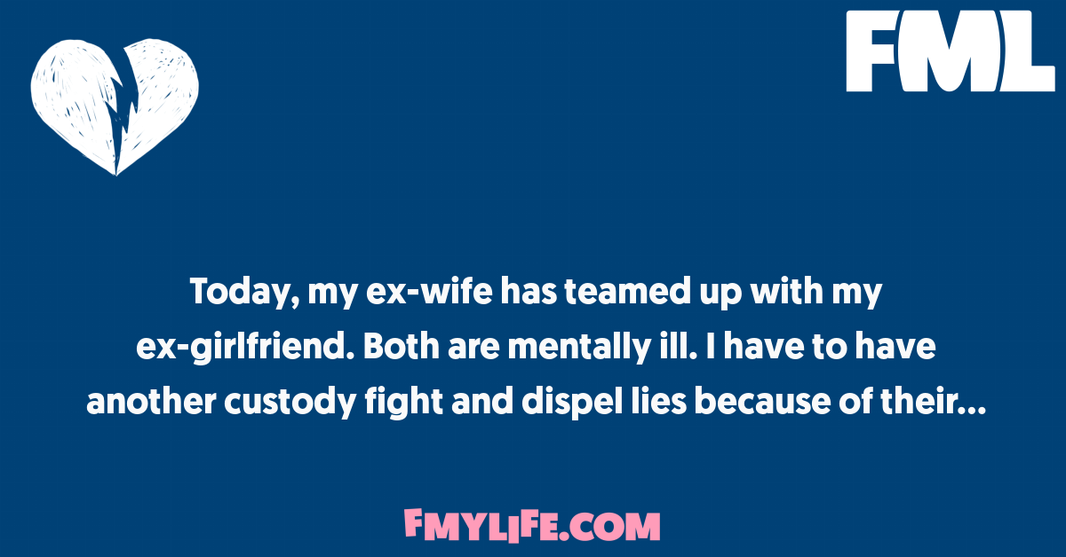 Today, my ex-wife has teamed up with my ex-girlfriend. Both are mentally ill. I have to have...