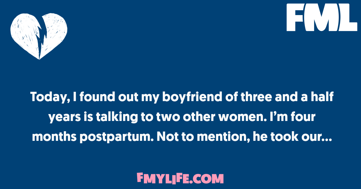 Today, I found out my boyfriend of three and a half years is talking to two other women. I’m...