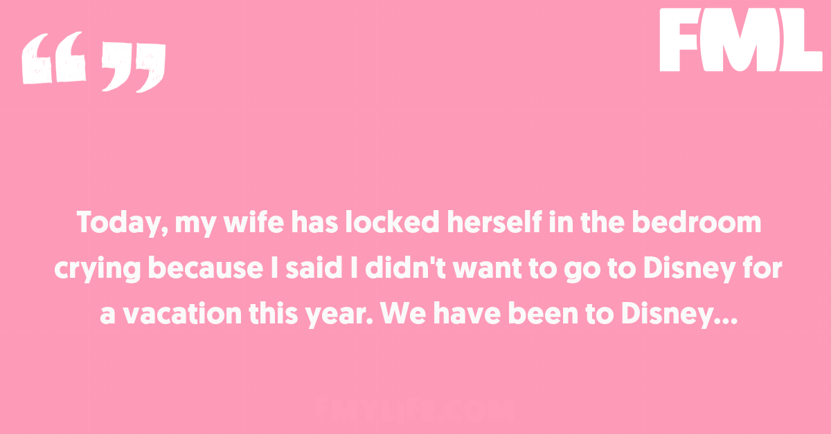 Today, my wife has locked herself in the bedroom crying because I said I didn't want to go...
