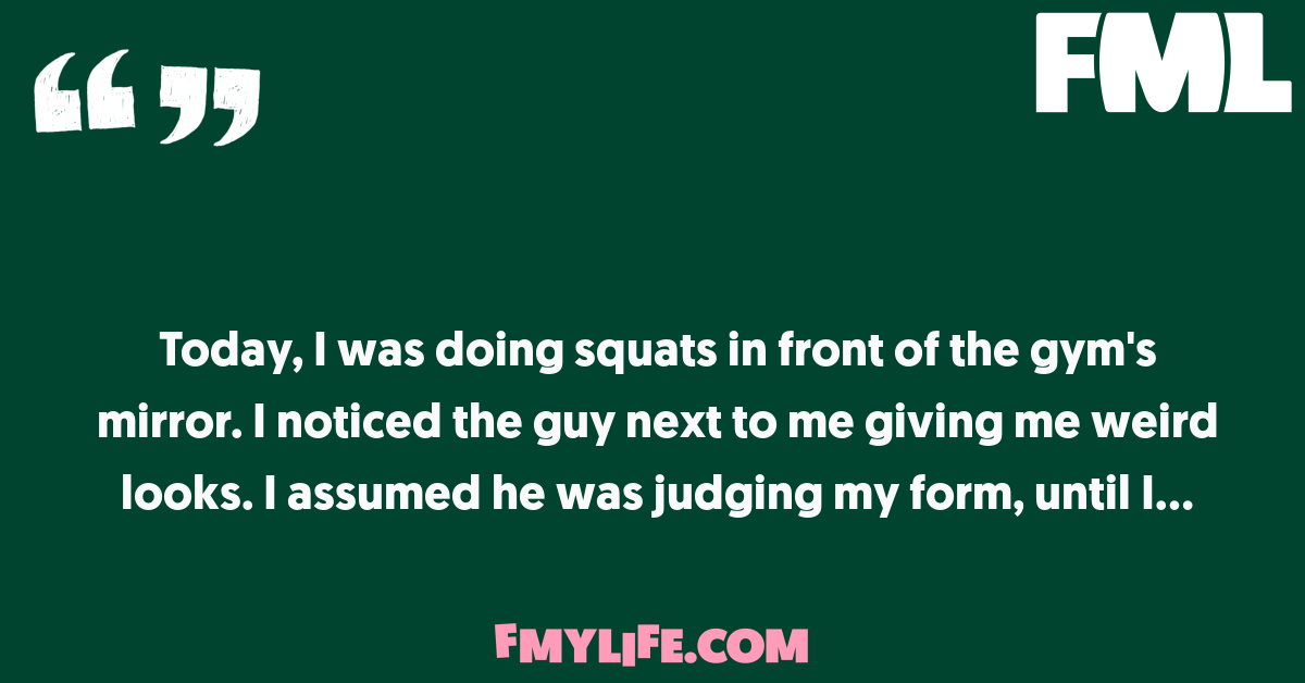 Today, I was doing squats in front of the gym's mirror. I noticed the guy next to me giving...