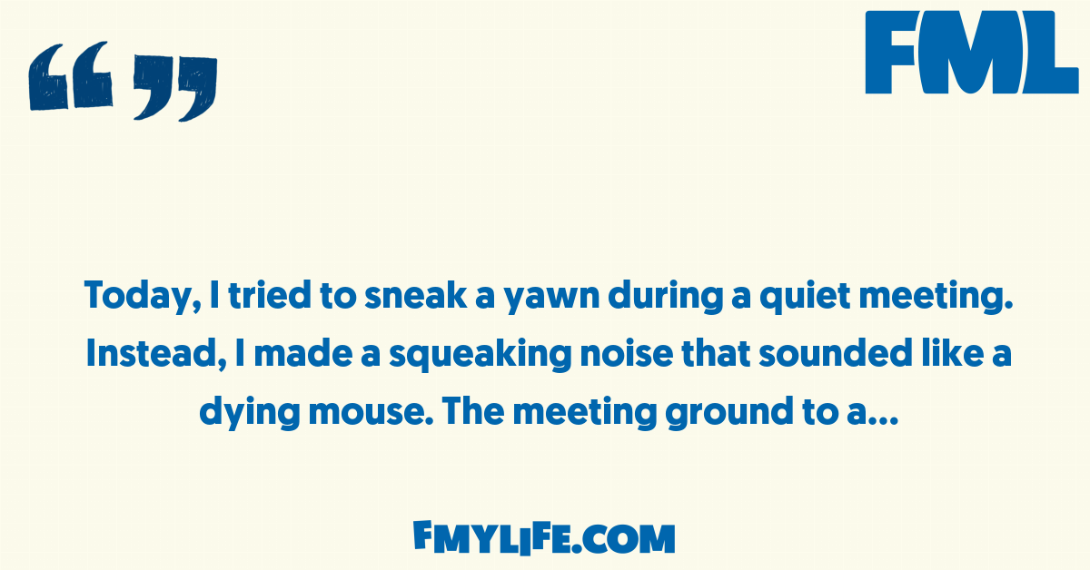 Today, I tried to sneak a yawn during a quiet meeting. Instead, I made a squeaking noise that...