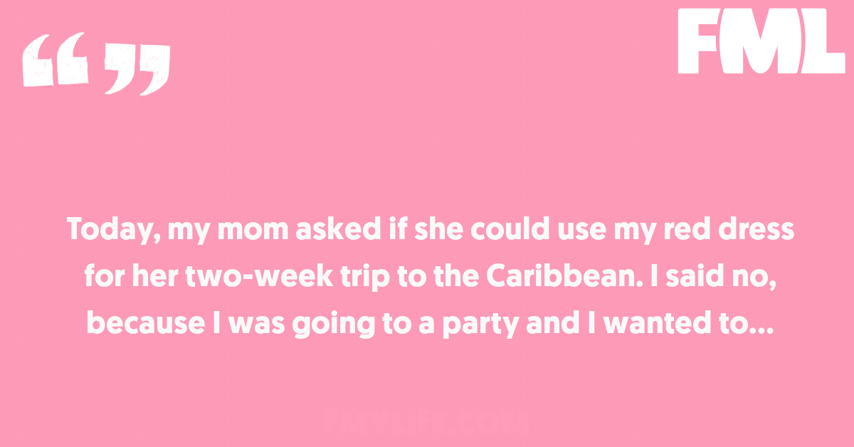 Today, my mom asked if she could use my red dress for her two-week trip to the Caribbean. I...