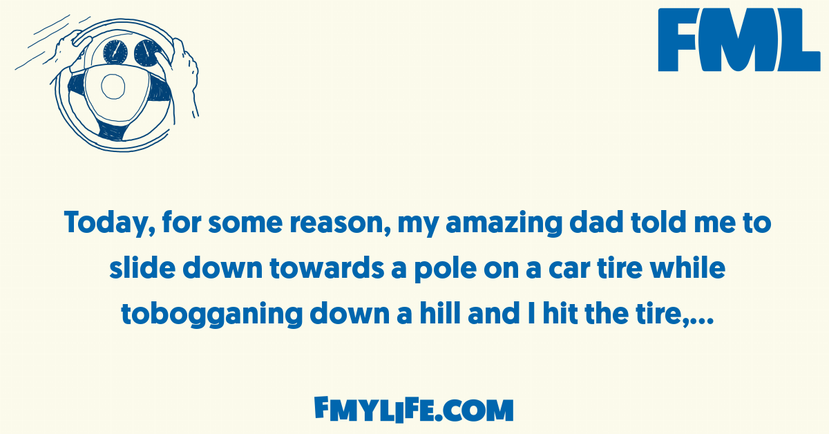 Today, for some reason, my amazing dad told me to slide down towards a pole on a car tire while...
