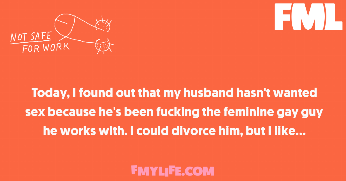 Today, I found out that my husband hasn't wanted sex because he's been fucking the feminine...
