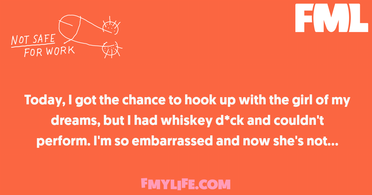 Today, I got the chance to hook up with the girl of my dreams, but I had whiskey d*ck and couldn't...