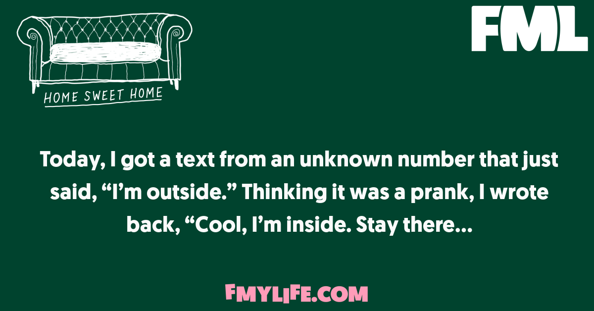 Today, I got a text from an unknown number that just said, βIβm outside.β Thinking it was a...