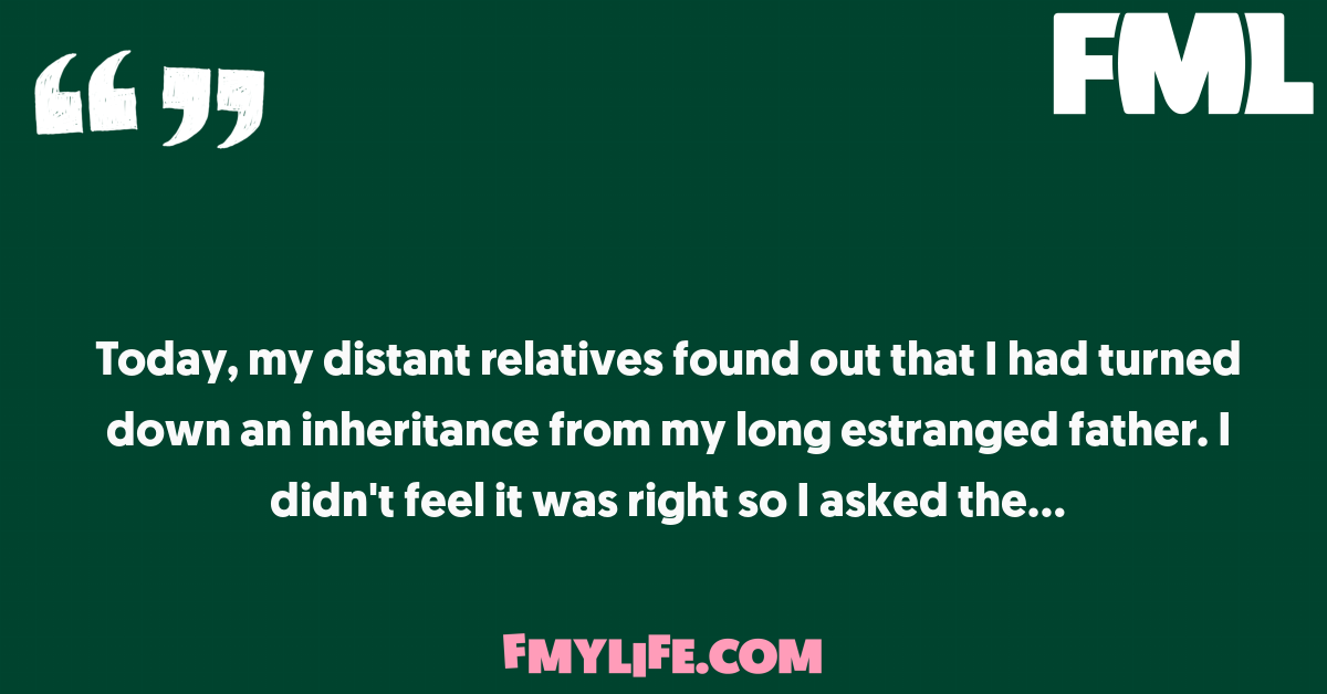 Today, my distant relatives found out that I had turned down an inheritance from my long estranged...