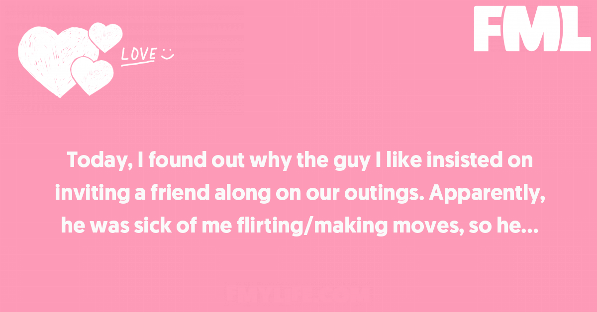 Today, I found out why the guy I like insisted on inviting a friend along on our outings. Apparently,...