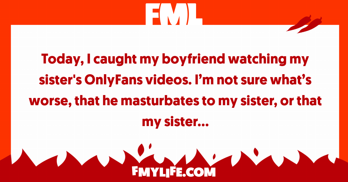 Today, I caught my boyfriend watching my sister's OnlyFans videos. I’m not sure what’s worse,...