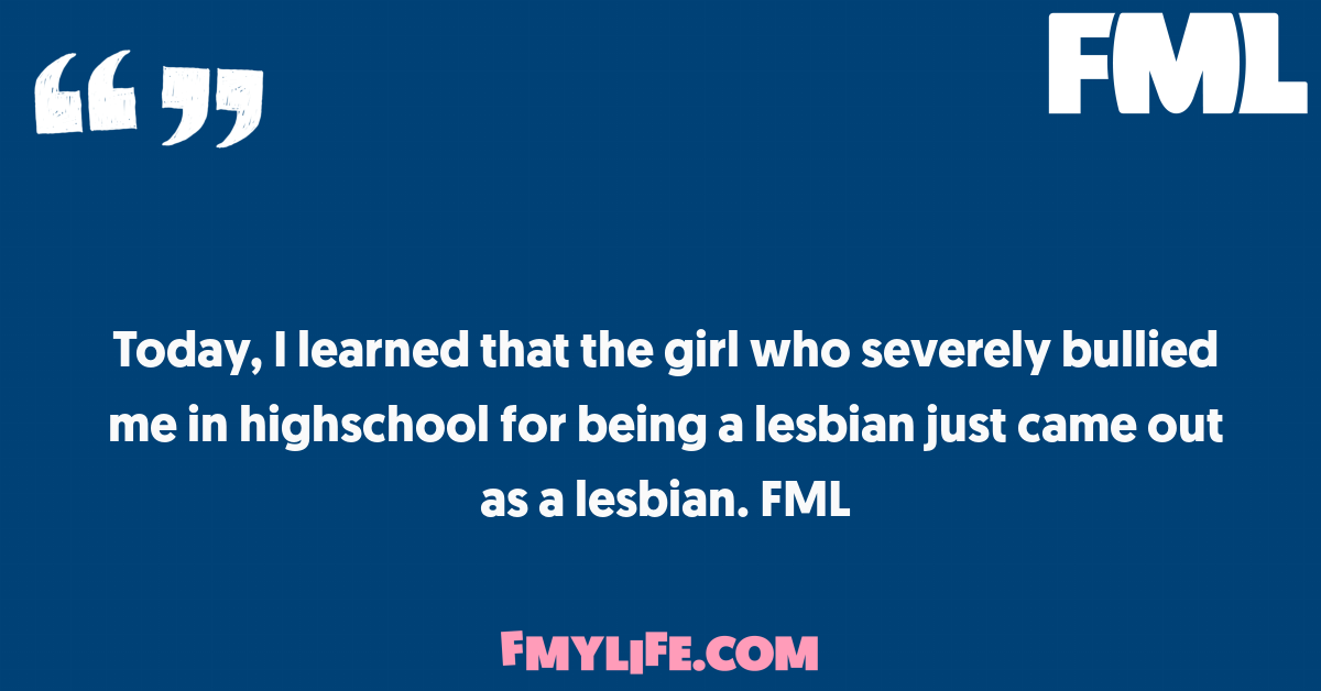 Today, I learned that the girl who severely bullied me in highschool for being a lesbian just...