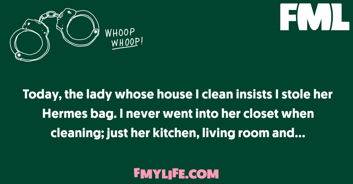 Today, the lady whose house I clean insists I stole her Hermes bag. I never went into her closet...