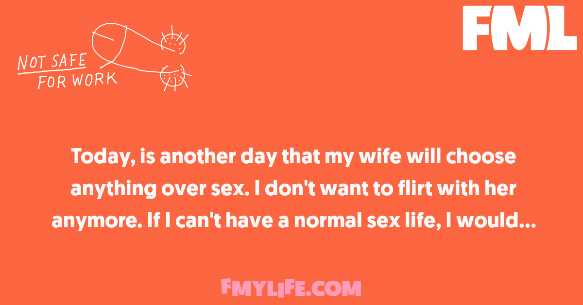 Today, is another day that my wife will choose anything over sex. I don't want to flirt with...