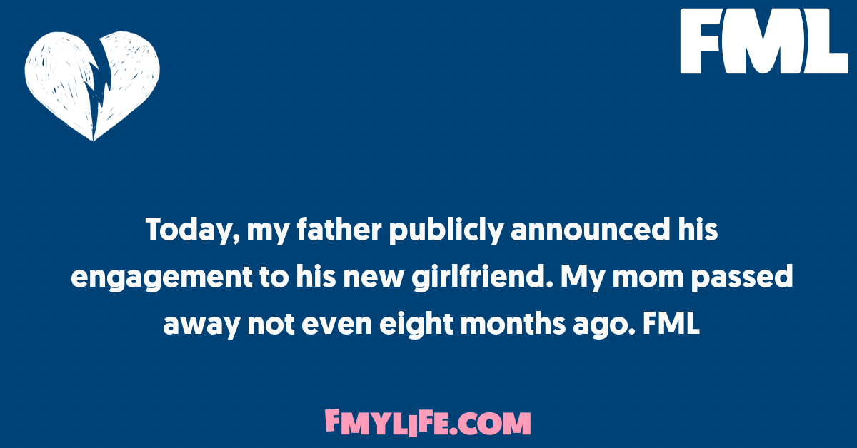 Today, my father publicly announced his engagement to his new girlfriend. My mom passed away...