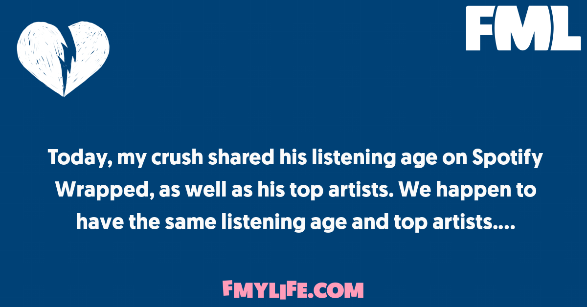 Today, my crush shared his listening age on Spotify Wrapped, as well as his top artists. We...
