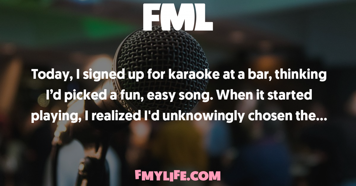 Today, I signed up for karaoke at a bar, thinking I’d picked a fun, easy song. When it started...