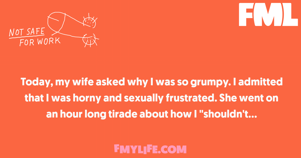 Today, my wife asked why I was so grumpy. I admitted that I was horny and sexually frustrated....