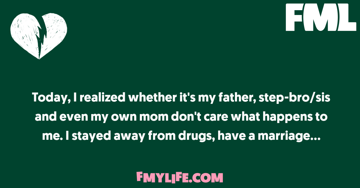 Today, I realized whether it's my father, step-bro/sis and even my own mom don't care what...