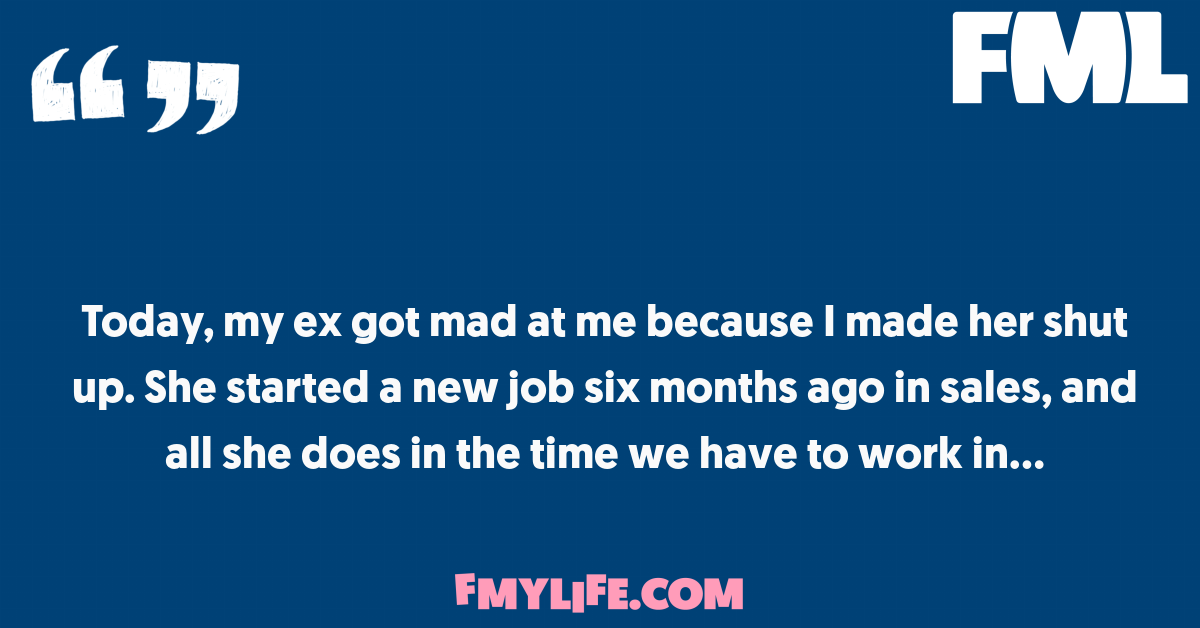 Today, my ex got mad at me because I made her shut up. She started a new job six months ago...