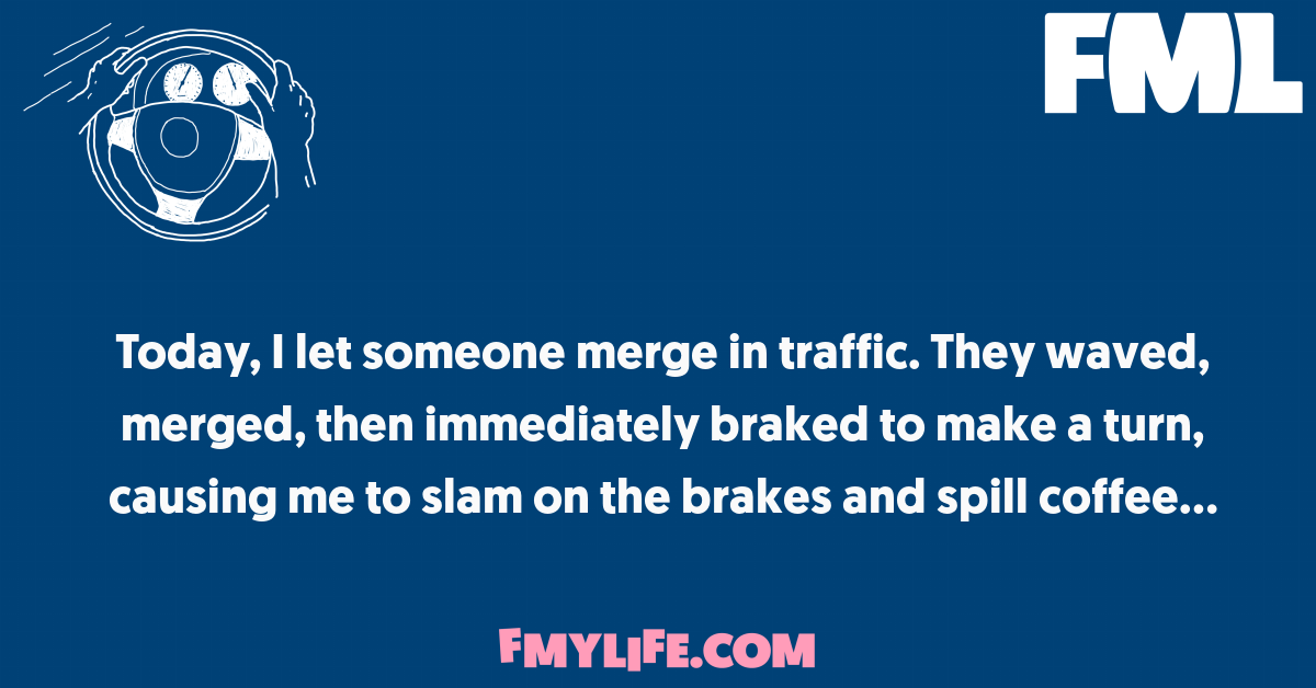 Today, I let someone merge in traffic. They waved, merged, then immediately braked to make...