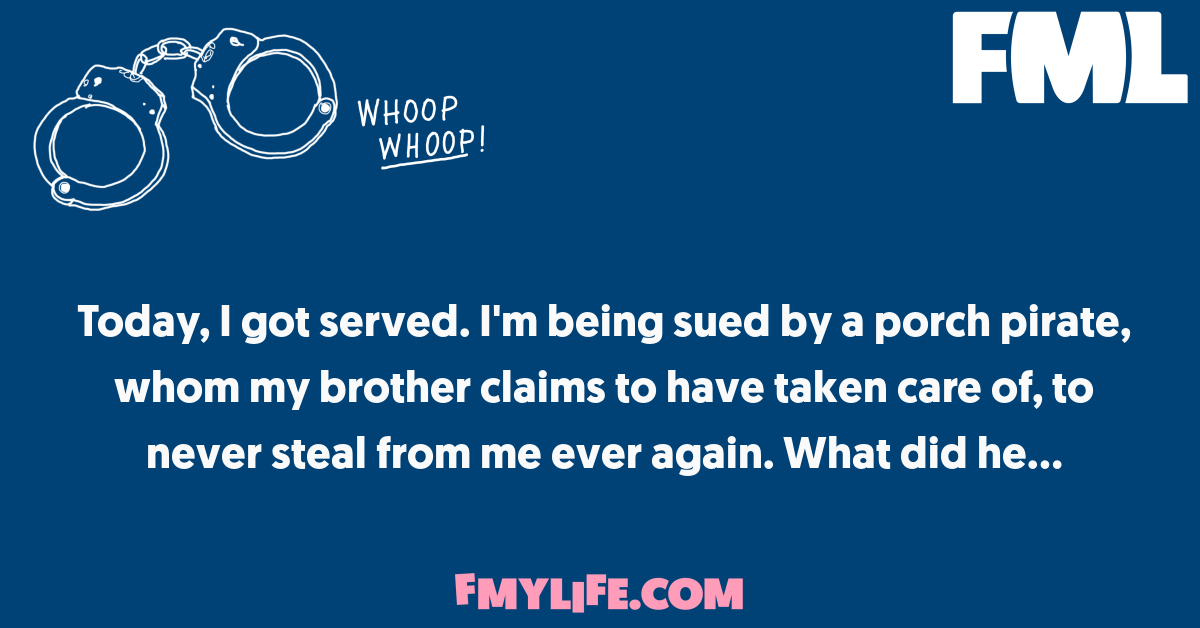 Today, I got served. I'm being sued by a porch pirate, whom my brother claims to have taken...