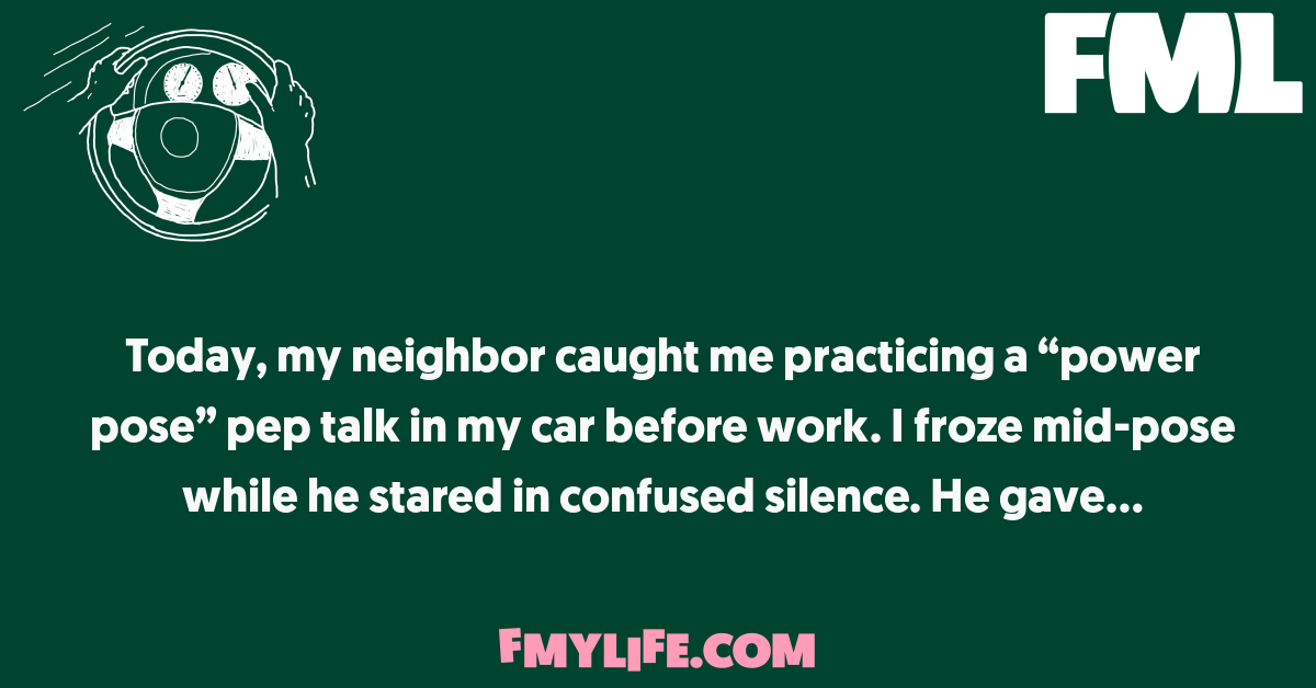 Today, my neighbor caught me practicing a “power pose” pep talk in my car before work. I froze...
