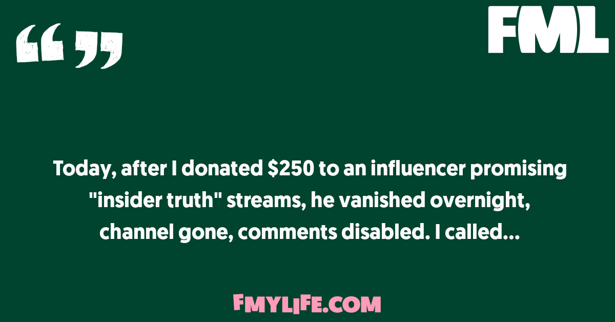 Today, after I donated $250 to an influencer promising "insider truth" streams, he vanished...