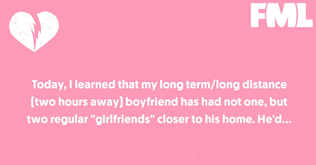Today, I learned that my long term/long distance (two hours away) boyfriend has had not one,...