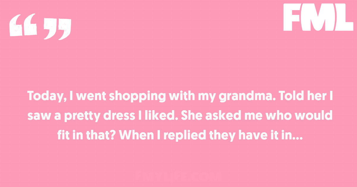 Today, I went shopping with my grandma. Told her I saw a pretty dress I liked. She asked me...