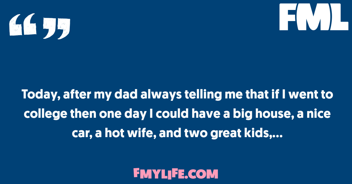 Today, after my dad always telling me that if I went to college then one day I could have a...