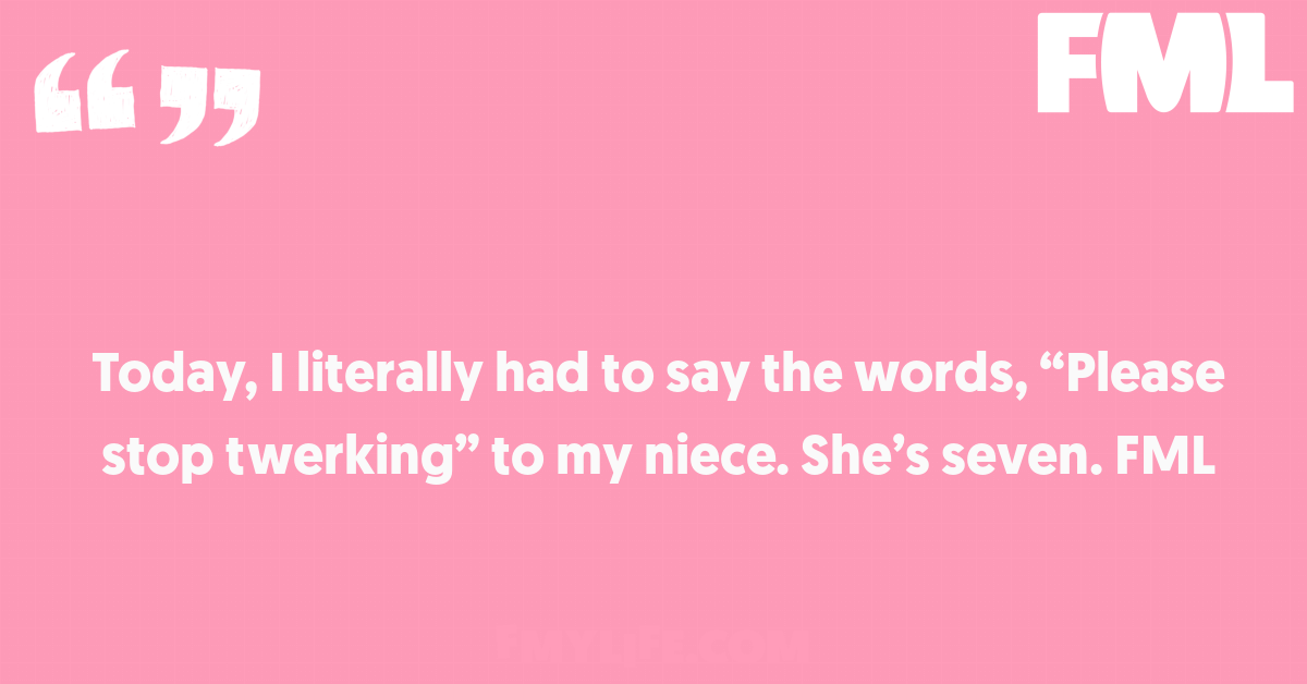Today, I literally had to say the words, âPlease stop twerkingâ to my niece. Sheâs seven. FML
