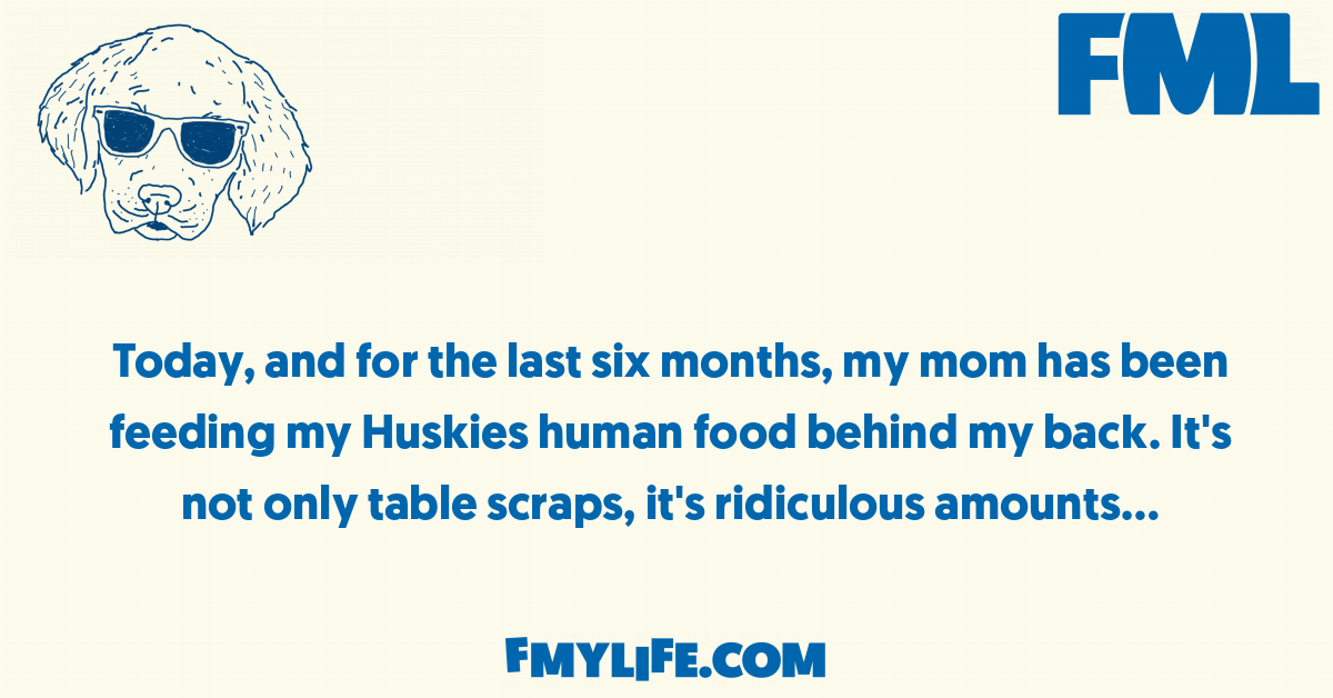 Today, and for the last six months, my mom has been feeding my Huskies human food behind my...