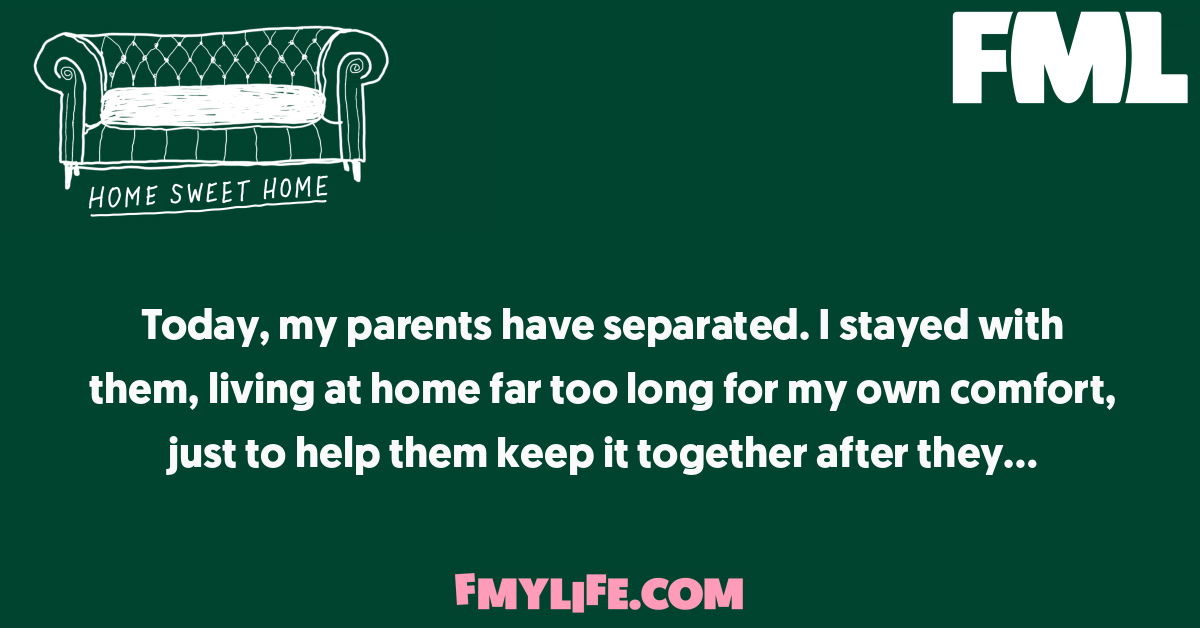 Today, my parents have separated. I stayed with them, living at home far too long for my own...