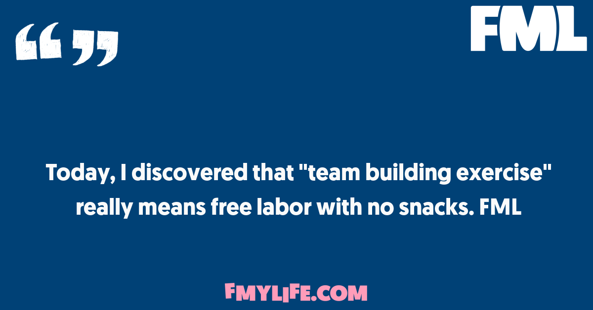 Today, I discovered that "team building exercise" really means free labor with no snacks. FML