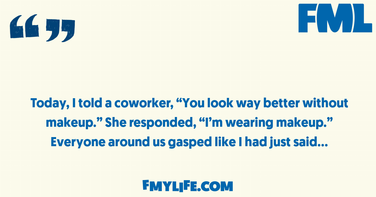 Today, I told a coworker, “You look way better without makeup.” She responded, “I’m wearing...