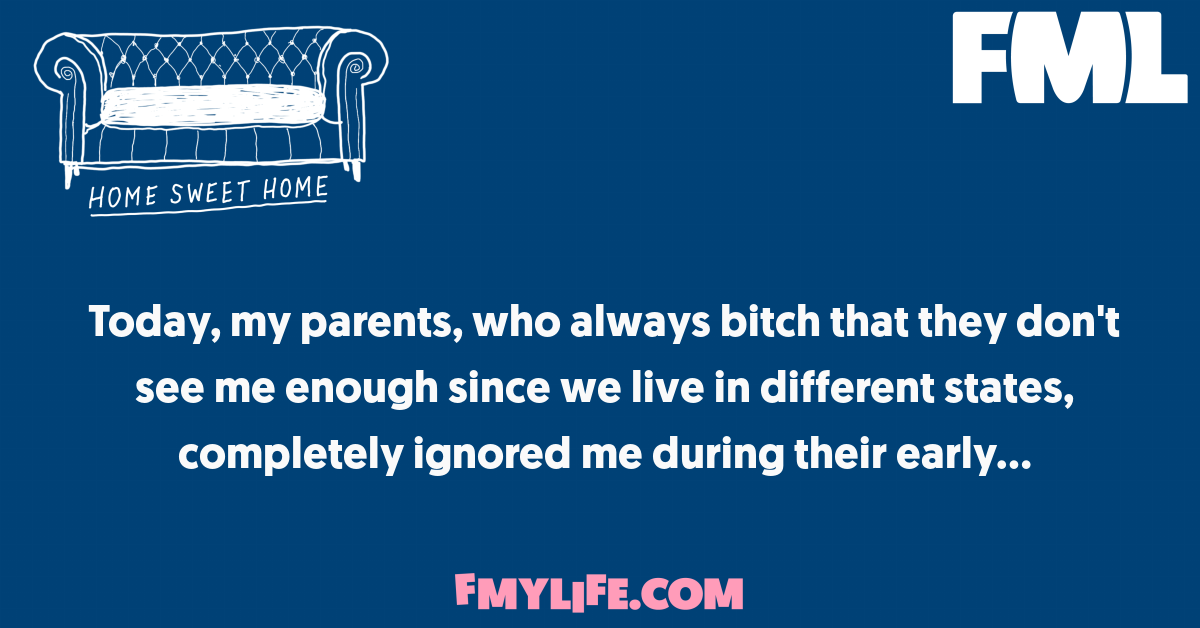 Today, my parents, who always bitch that they don't see me enough since we live in different...